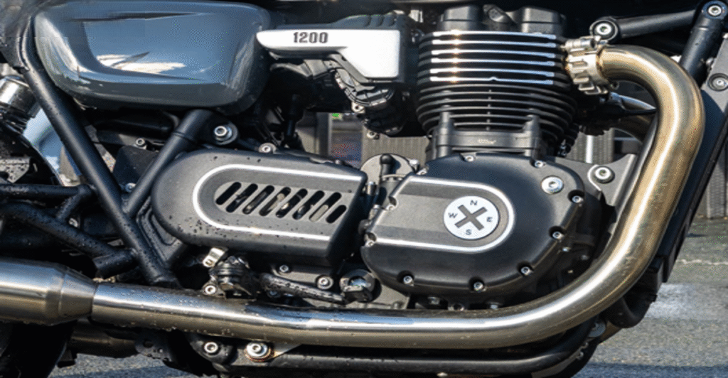 Let me tell you about the first few kilometers leaving Bilaspur town. Rain had passed just an hour earlier, and the hill roads were slick, pockmarked, and littered with gravel patches. Not ideal, but perfect for a real-world shakedown. The Cromwell doesn’t have keyless ignition. No heated grips. No radar this or that. It’s old-school in its intentions: turn the key, thumb the starter, and go. But that’s its charm. The sound from the 1200cc parallel twin is throaty but not obnoxious, enough bass to make you grin without drawing unwanted attention. Throttle response? Smooth and progressive. There’s torque,108 Nm of it at just 3,100 rpm, so overtaking is never an issue, even when you’re already climbing in third. The traction control kicked in once on a particularly slimy bend, but it did so gently, without drama. Nothing about this bike feels like it’s pretending. That’s a rare and precious quality in 2025.