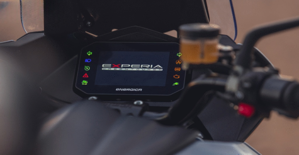 At first glance, the Energica Experia exudes a design language that pays homage to its combustion-engine counterparts. The sharp lines and aggressive stance are reminiscent of the Ducati Multistrada, while the upright posture and adventure-ready demeanor echo the BMW S 1000 XR. The front fairing, with its hawk-like nose and adjustable windshield, not only provides aerodynamic efficiency but also adds to the bike’s commanding presence. The integration of LED lighting and a full- color TFT display ensures that the Experia stands out, both in form and function.